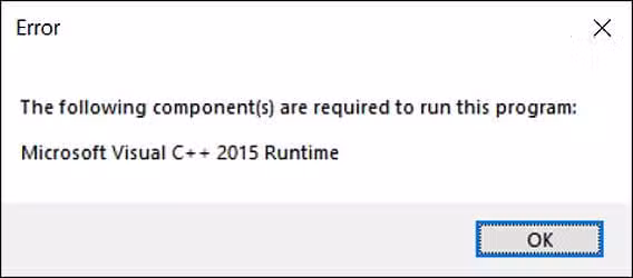 “المكونات التالية مطلوبة لتشغيل هذا البرنامج: Microsoft Visual C++ 2015 Runtime”