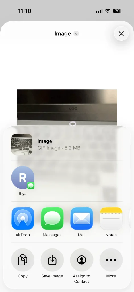 الآن، انتقل إلى علامة التبويب Library، وانقر فوق Convert Burst to GIF، وحدد الصورة المتتالية التي تريد استخدامها. في غضون ثوانٍ، ستكون صورة GIF المتحركة جاهزة. يمكنك بعد ذلك النقر فوق رمز المشاركة لإرسالها مباشرةً أو حفظها في تطبيق الصور أو الملفات.