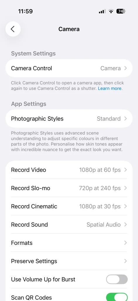 4. تثبيت إعدادات الكاميرا المفضلة لديك على iPhone