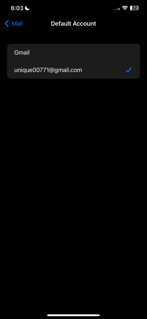 6. اختيار حساب البريد الإلكتروني الافتراضي على iPhone