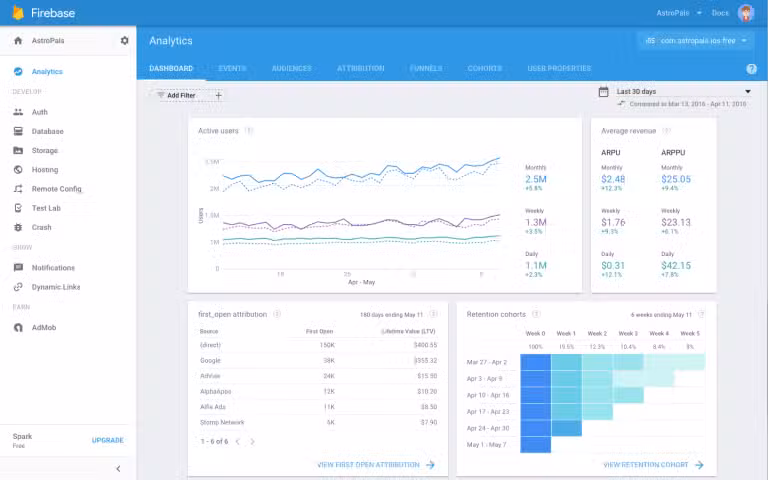 هذه المنصة توفر لأصحاب التطبيقات الحصول على معلومات مختلفة حول وقت تواجد المستخدمين وايضا عدد التنزيلات ومتوسط مدة الاستخدام وما إلى غير ذلك من المعلومات المفيدة التي تهم أصحاب التطبيقات وتجعلهم يعرفون أيضا الحجم الحقيق للجمهور وطبيعته وسلوكياتهم على التطبيقات.