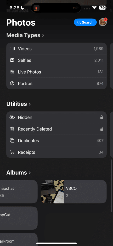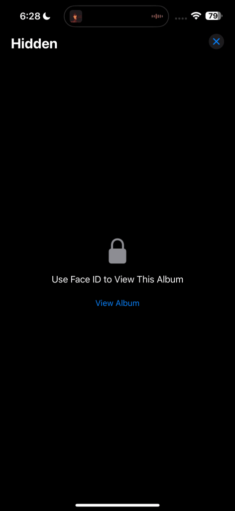 ستجد هنا الألبوم المخفي. للوصول إلى الصور، ما عليك سوى فتح الألبوم والنقر فوق عرض الألبوم ثم استخدام Face ID أو Touch ID أو رمز المرور الخاص بجهاز iPhone الخاص بك للمصادقة.