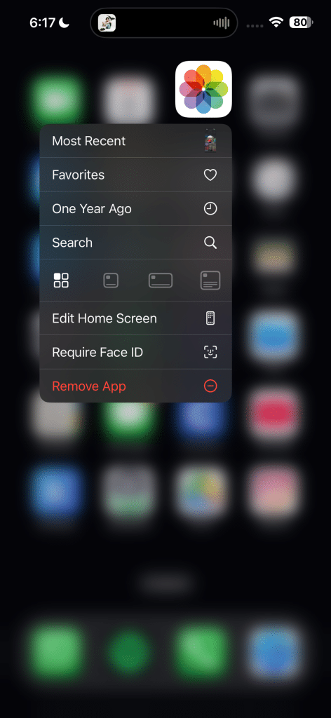 - ستظهر قائمة إجراءات سريعة تحتوي على عدة خيارات. ما عليك سوى تحديد طلب Face ID/Touch ID/رمز المرور.