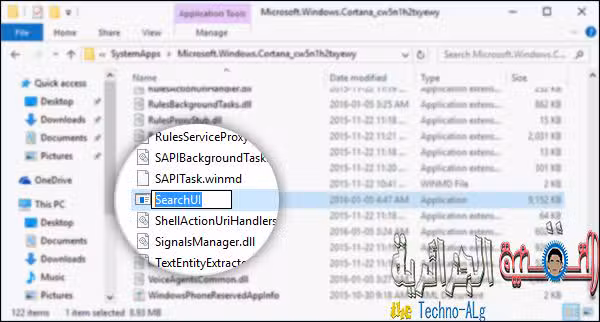 كل ما في الأمر هو إننا سنقوم بالتعديل علي ملف تشغيل الخاصية وهو يُسمي “SearchUI.exe” فهذا الملف هو المسؤول عن تشغيل عملية Search، وتستطيع الوصول إليه بعد متابعة المسار التالي:
