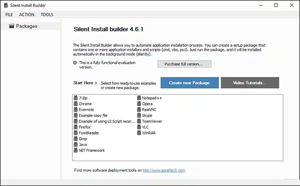كما أشرت سنقوم اولاً بتحويل البرامج إلي برامج صامته أي تثبيتها يكون سريع ويحتاج فقط النقر عليه مرتين ليتم التثبيت وهي المطلوبة حتي تنجح عملية دمجها مع نسخة الويندوز، وهناك ادوات كثيرة تتيح لك فعل ذلك يُمكن استخدمها ولكن سأعتمد في هذا الشرح علي برنامج بسيط جداً يُدعي Silent Install Builder فهو مخصص لهذا الشأن ويُمكن تحميله من هنا، فبعد تحميله وتثبيتهُ علي حاسوبك ستظهر واجهته الرئيسية كما هو موضح بالصورة أعلاه حيث يضع لك بعض البرامج المشهورة الذي يُمكنك تحويلها إلي برامج صامته مباشرةً لكن لبدأ تحويل البرامج المتواجدة لديك فتابع معي الخطوة التالية.