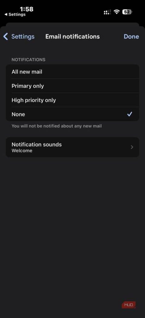 أوصي بتعطيل الإشعارات لتطبيقات البريد الإلكتروني الخاصة بك والتحقق منها يدويًا مرتين أو ثلاث مرات في اليوم: مرة واحدة عند بدء العمل، ومرة أخرى بعد الغداء، وربما مرة أخرى قبل تسجيل الخروج. بهذه الطريقة، يمكنك التحكم في صندوق الوارد الخاص بك دون أن تشتت انتباهك الإشعارات المستمرة. وإذا وصل شيء عاجل حقًا إلى صندوق الوارد الخاص بك، فمن المحتمل أن المتصل سيرسل رسالة نصية أو يتصل أو يتواصل عبر الدردشة على أي حال.