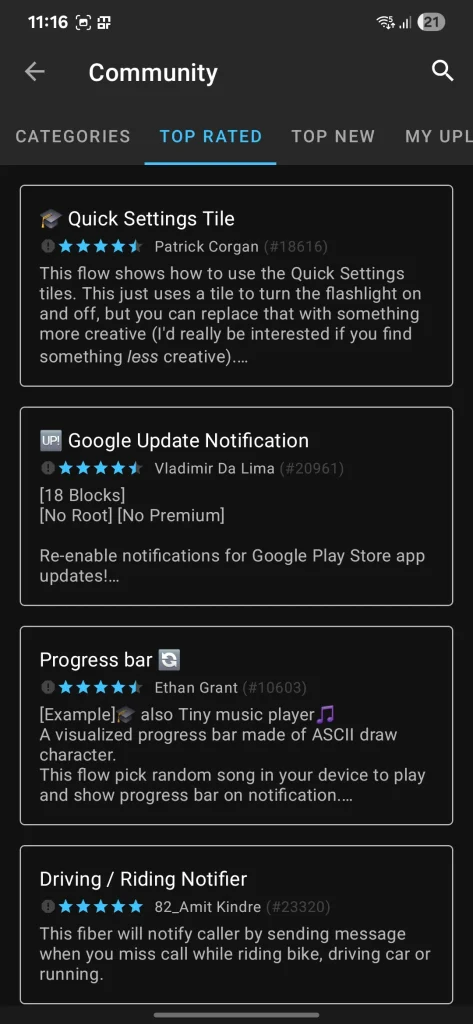 أحد أفضل جوانب Automate هو مجتمعه النشط. يتوفر مكتبة ضخمة من “التدفقات” (flows) التي أنشأها المستخدمون، والتي يمكنك تنزيلها وتجربتها. قد تجد من بينها مهام لم تكن تعلم أنك بحاجة إلى أتمتتها.