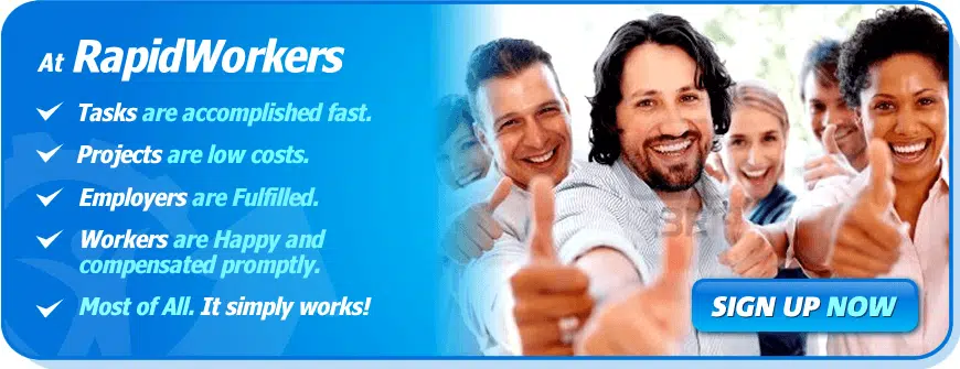 Rapidworkers هي خدمة UnikScripts، Inc. وهي مجانية للانضمام لها. يتشابه الموقع تمامًا مع Microworkers ولديه واجهة عمل تقريبًا مماثلة بالرغم من أن موقع Microworkers أكثر إبداعًا واحترافًا. هناك نوعان من الأشخاص في Rapidworkers –