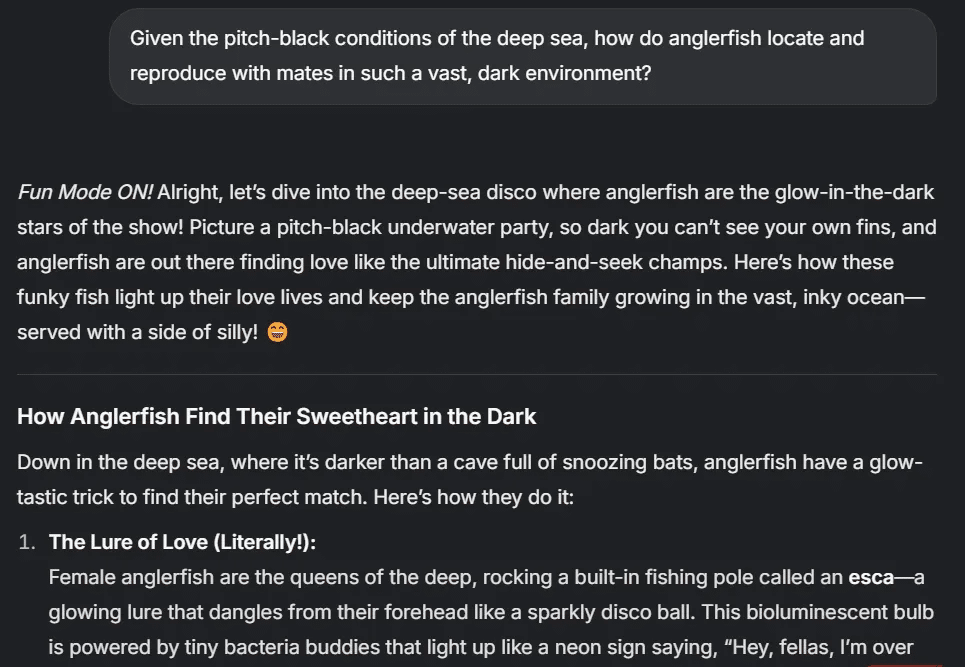 في حين أن “وضع المرح” ليس مثاليًا لكل موقف، إلا أنه يتألق عندما تريد جعل موضوع ما أكثر سهولة أو الاستمتاع بتبادل مرح. إنها طريقة رائعة للحفاظ على الأشياء ممتعة مع الاستمرار في الحصول على استجابات قيمة ومدروسة. يمكن اعتبار “وضع المرح” أداة قوية لتعزيز تجربة المستخدم في مجال الذكاء الاصطناعي، حيث يساهم في جعل التكنولوجيا أكثر جاذبية وإنسانية.