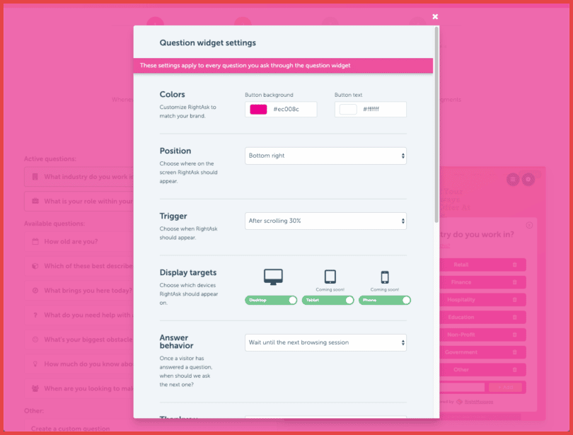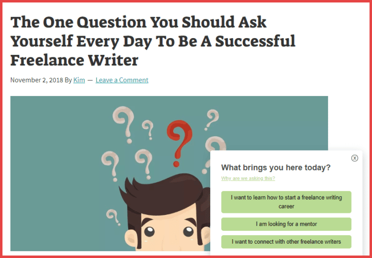 إنها أداة رائعة للتعرف على سبب زيارة الشخص لموقعك بالضبط ، مما يمنحك القدرة على تقديم المحتوى الملائم له استنادًا إلى إجاباته.