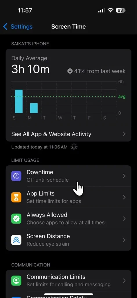 استخدمت ميزة “حدود استخدام التطبيقات” في تطبيق “Screen Time” للمساعدة في تطبيق هذه الأهداف. لقد كانت فعالة بشكل مُدهش. عندما تصل إلى الحد الذي قمت بتحديده، يقوم هاتفك بتذكيرك وغالبًا ما يمنعك من استخدام التطبيق، إلا إذا قمت بتجاوز هذا الحد. هذا التنبيه جعلني أتوقف وأفكر مليًا فيما إذا كنت أرغب في الاستمرار في التصفح بشكل لا واعٍ.