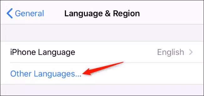 هذا هو المكان الذي يُمكنك فيه ضبط لغة النظام العامة على جهاز iPhone أو iPad. لكن ليس عليك التبديل إلى اللغة الجديدة – فقط أضفها إلى هذه القائمة.