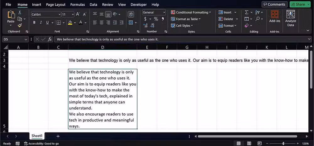 - لاحظ أنك قد تحتاج إلى تغيير حجم الخلية يدويًا إذا لم يكن النص مناسبًا بالشكل المطلوب.