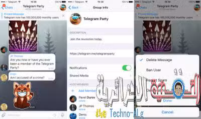 كما سيكون بإمكان مدراء المجموعات “Supergroups” على تليجرام الولوج إلى عدد من الميزات كحذف رسائل الأعضاء أو عضو ما أو حظره بالإضافة كذلك إلى إمكانية تثبيت رسالة ما حتى يتسنى لجميع الأعضاء مشاهدتها و غيرها من الميزات.