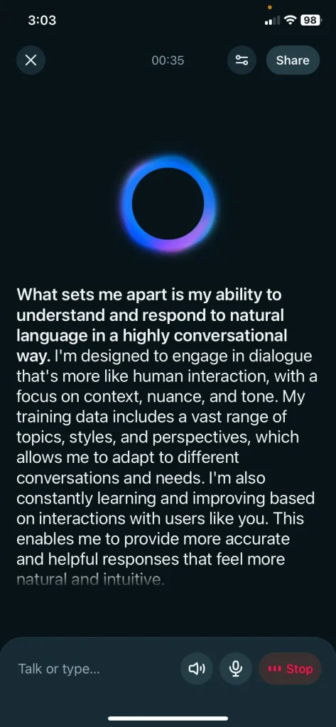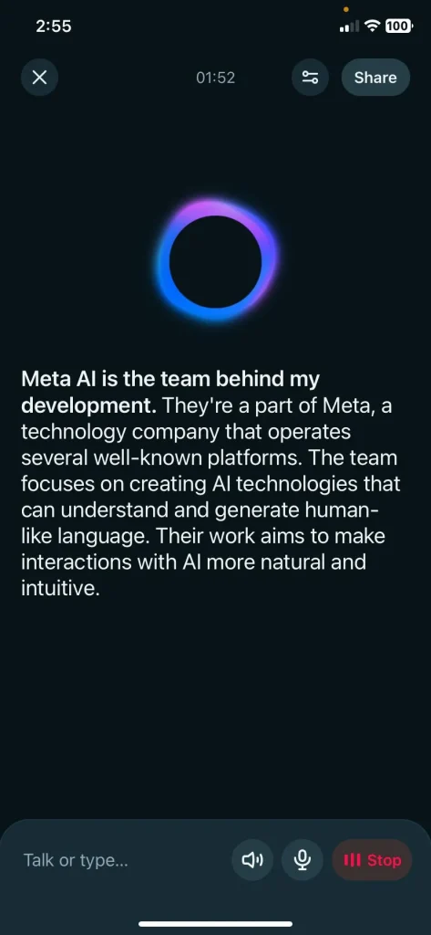 إنه تمييز دقيق، لكنه يوفر تجربة أكثر سلاسة من نماذج الذكاء الاصطناعي الأخرى. لا يكتفي Meta AI بمعالجة ما تقوله فحسب؛ بل يستمع بطريقة تبدو شخصية وإنسانية وفورية. هذه القدرة على الاستماع الفعال تجعل Meta AI أداة قوية للتواصل والتفاعل.
