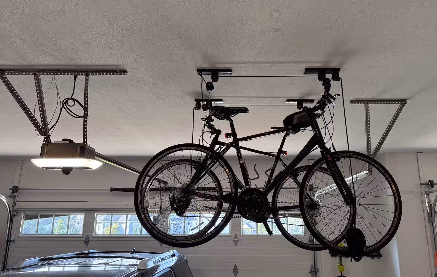 الحصول على دراجتي عندما أريد الركوب أصبح سهلاً بشكل لا يصدق الآن. اسحب الحبل، أنزل الدراجة، افصلها، وانطلق. يستغرق وقتًا أقل مما كنت أفعله لنقل الدراجات الأخرى من الطريق عندما كانت جميعها على الأرض. بعد عامين من الاستخدام المنتظم، لا تزال البكرات الأصلية تعمل بسلاسة، دون الحاجة إلى صيانة.