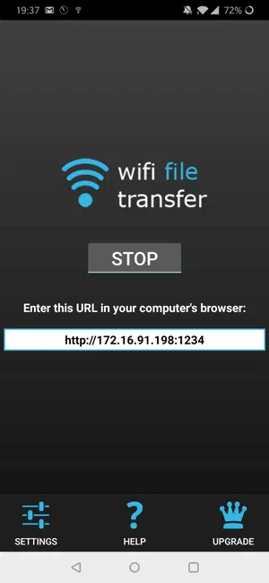 WiFi File Transfer هو تطبيق بسيط يتيح لك نقل الملفات باستخدام خادم FTP. تم تطوير التطبيق لنظام Android ، ولكن يمكنك استخدامه على أي جهاز باستخدام متصفح الويب. لنقل ملف إلى iOS ، قم أولاً بتثبيت التطبيق من متجر Play ، وافتحه وقم بتشغيل الخادم بالنقر فوق زر START في التطبيق.