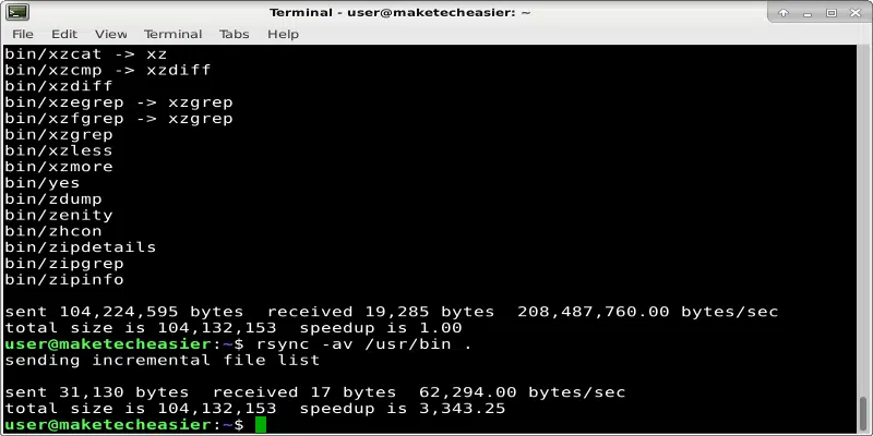 الأمر أعلاه يعادل rsync /bin/ls /home/your_username. هذا ينسخ الأمر “ls” إلى الدليل الذي أنت فيه حاليًا. بشكل افتراضي ، والذي يجب أن يكون هذا /home/your_username. النقطة من أجل أن تقف عند الدليل الحالي. يمكن أن تكون Pathnames مطلقة (/home/your_username/Downloads/chrome.zip) أو متعلقة بالدليل الحالي الخاص بك (Downloads/chrome.zip).