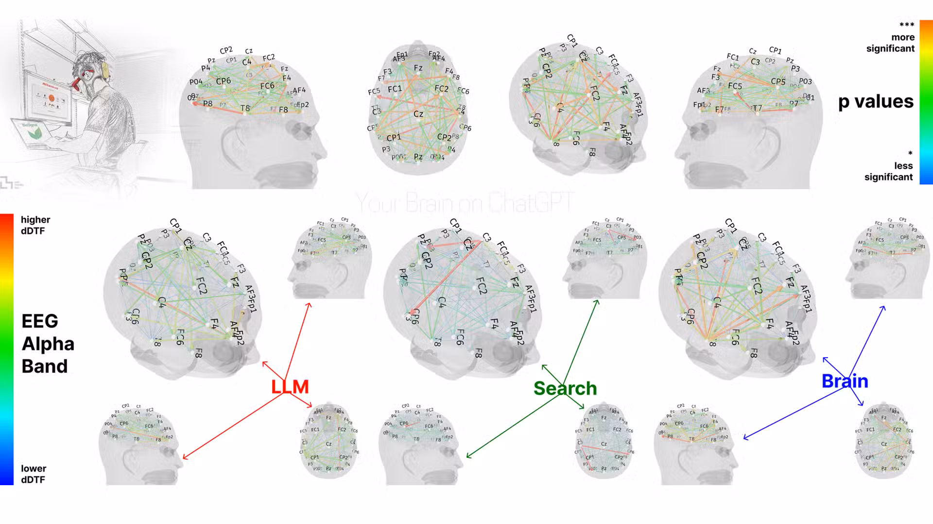 تُشير دراسة جديدة صادرة عن مختبر الإعلام في معهد ماساتشوستس للتكنولوجيا (MIT Media Lab) إلى أن استخدام أدوات الذكاء الاصطناعي يقلل من نشاط الدماغ في بعض النواحي، وهو أمر مثير للقلق بطبيعة الحال. ولكن أعتقد أن هذا جزء فقط من الصورة. فالطريقة التي نستخدم بها الذكاء الاصطناعي، مثل أي تقنية أخرى، هي ما يهم حقًا.