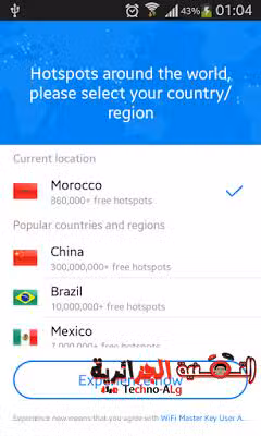 الطريقة التي سأشاركك إياها اليوم هي صالحة في جميع بلدان العالم، و هي تعتمد على تطبيق مجاني يدعى “Wifi Master Key” الذي حقق أزيد من 50 مليون مستخدم حول العالم و بسمعة جيدة جدا، يمكنك الإطلاع عليها من خلال التعاليق..