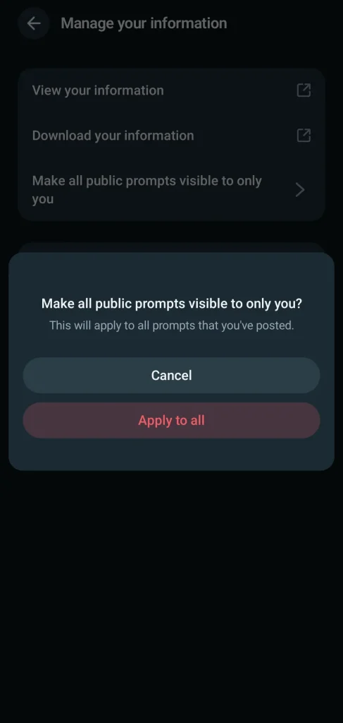 على الرغم من أن المشاركة ليست تلقائية، إلا أنه من السهل جدًا القيام بذلك عن طريق الخطأ. بضغطة زر بسيطة، يمكن إرسال استفسارك إلى الخلاصة العامة. العديد من المستخدمين لا يلاحظون ذلك حتى، خاصةً عندما يكونون بصدد اختبار الميزات أو اللعب بتوليد الصور.