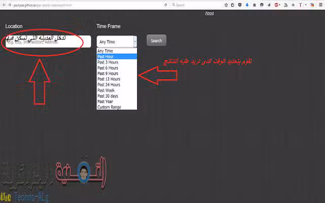 ستقوم بالدخول الى هذا الموقع youtube.github ثم تقوم بتحديد مكان سكنك كما في الصورة :